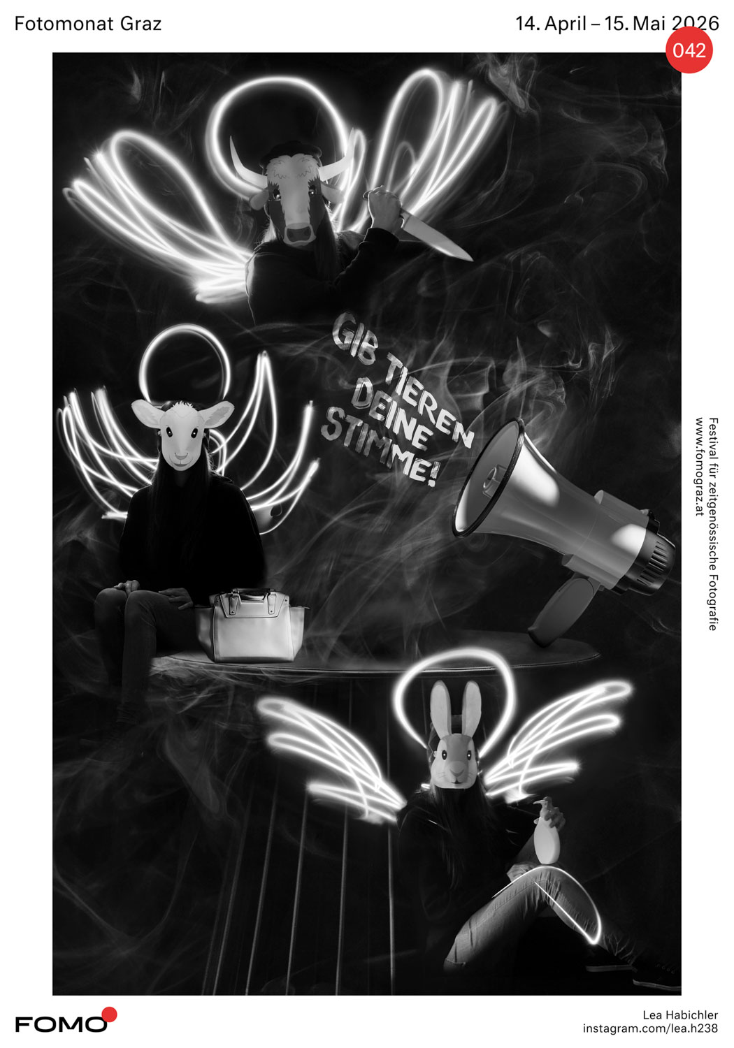 Heey, ich heiße Lea Habichler, bin 22 Jahre alt, und wohne in Oberösterreich. Seit 2021 arbeite ich im Fotostudio beim XXXLutz in Asten und habe 2024 erfolgreich meine Lehre absolviert. Mit diesem Bild möchte ich auf die oft brutale, menschengemachte Tierindustrie aufmerksam machen 🙂 Wir alle tragen etwas dazu bei! Egal ob in der Lebensmittel-, Fashion-, Kosmetikindustrie etc. …. Tiere werden verwendet, um die menschliche Gier, Ausbeutung und den Konsum zu befriedigen.
